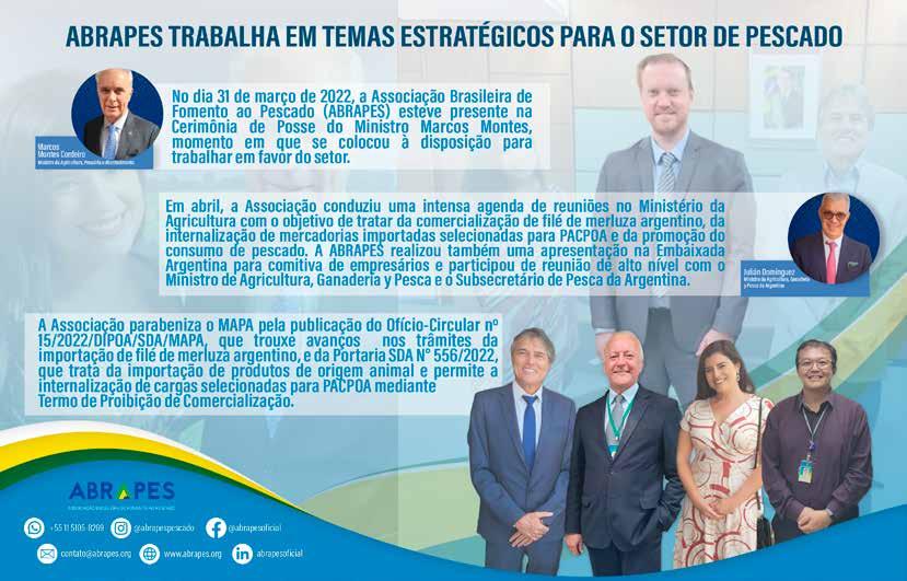 Nas últimas semanas [especialmente em março], tivemos problemas com a comercialização de merluza a partir da mudança de alguns mecanismos de fiscalização nas fronteiras do Brasil [reinspeção na entrada e não no SIF de destino] Tivemos uma reunião com o novo ministro de Agricultura do Brasil, Marcos Montes, com o ministro de Agricultura da Argentina, Julián Domínguez, e o secretário da aquicultura e pesca, Jairo Gund. Sendo assim, tivemos um espaço muito construtivo, reconhecemos a irmandade que temos entre os dois povos que nos leva a potencializar os negócios de nossas empresas.