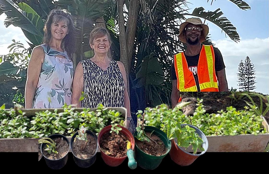 Marianne (centre) is not alone in her endeavours. Her household actively supports the conservancy's green mission. Ngwane (right), the family gardener, plays a crucial role, in ensuring the young plants stay hydrated and thrive. Marianne's daughter, Charmaine (left) also contributes by regularly passing along her cuttings, fostering a familial culture of environmental stewardship.
