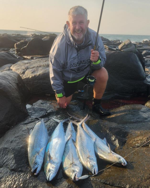 Steve's love for fishing began at a very young age. "I started fishing when I was just a small boy, still in nappies," he recalls with a chuckle. His father and grandmother were his first teachers, introducing him to freshwater angling, rock-andsurf fishing, and deep-sea adventures. However, after settling on the coast, rock-and-surf fishing became his true passion. He hopes his son, Christo Pretorius, will continue the family's fishing legacy. Steve fondly shares, "Christo's nickname at school was 'Vis' Pretorius because he caught so many fish."