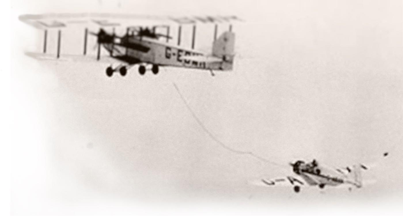 Left: A Handley Page Harrow, fittingly registered to reflect the acronym of Sir Alan Cobham’s Company, refuels an