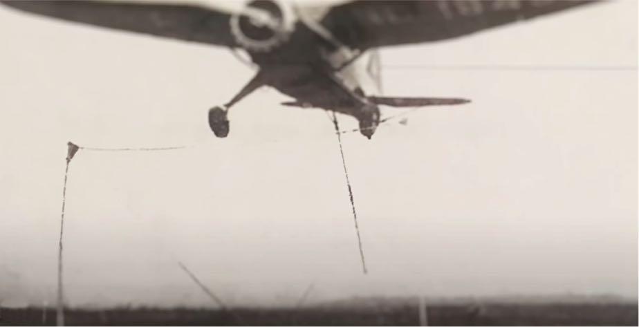 Above. Lt Godfrey Cabot snagging his drum of gasoline, which was on a raft floating on the Potomac River. He then hauled it aboard to top up his tanks.✈
