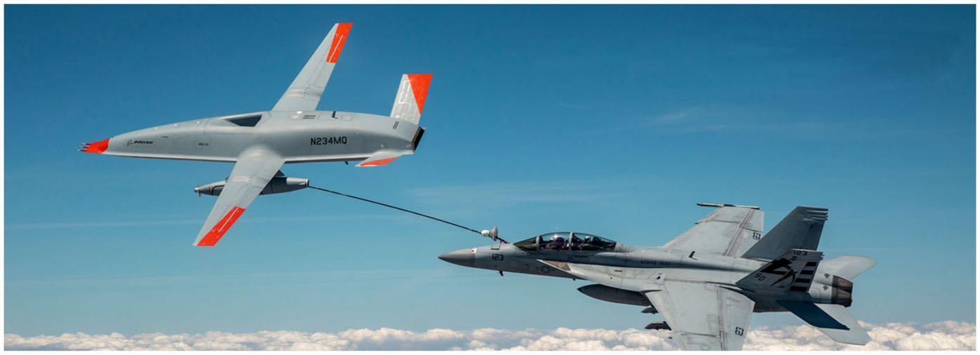 The next breakthrough is Unmanned Vehicle refuelling. In the main image here, Boeing’s MQ-25 “Stingray” is being positioned on the deck of USN George W. Bush (CVN77) for trials. The aircraft’s first flight occurred in September 2019, followed by actual refuelling and Flight Deck trials in 2021.