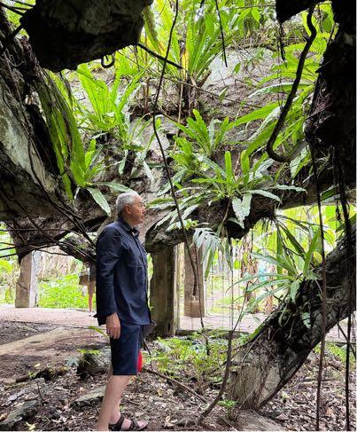 As we walked though gardens and plantations the occasional concrete underfoot indicated we were again walking over runway remains. Coming upon the fortified Fleet Headquarters buildings and blockhouses, overgrown by jungle vines and trees, felt like finding a lost Inca city. The explosive devastation of the strikes was starkly evident from the twisted blast doors and shattered steel reinforced concrete.