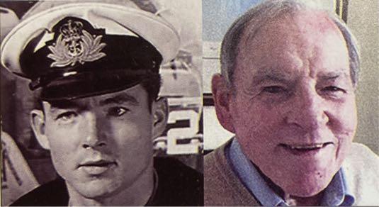Left:Geoff Cooper on his 100th Birthday with most of his descendants. Below: Cooper aboard HMS Empress.