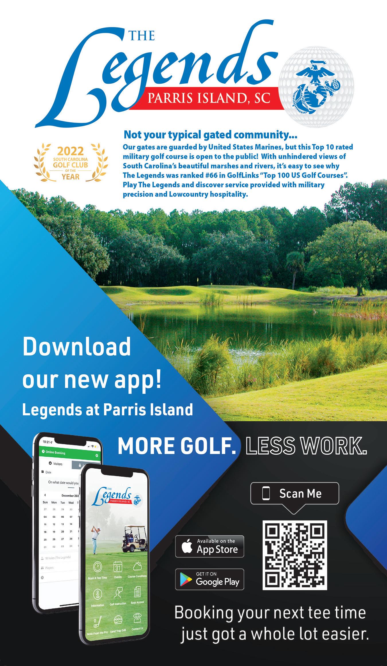 EXPERIENCE: Play a round of golf at Parris Island’s Legends Golf Course, ranked among the world’s top 10 military courses. Fringed by pines and salt marshes, it challenges Marines and civilians alike. Reservations required.