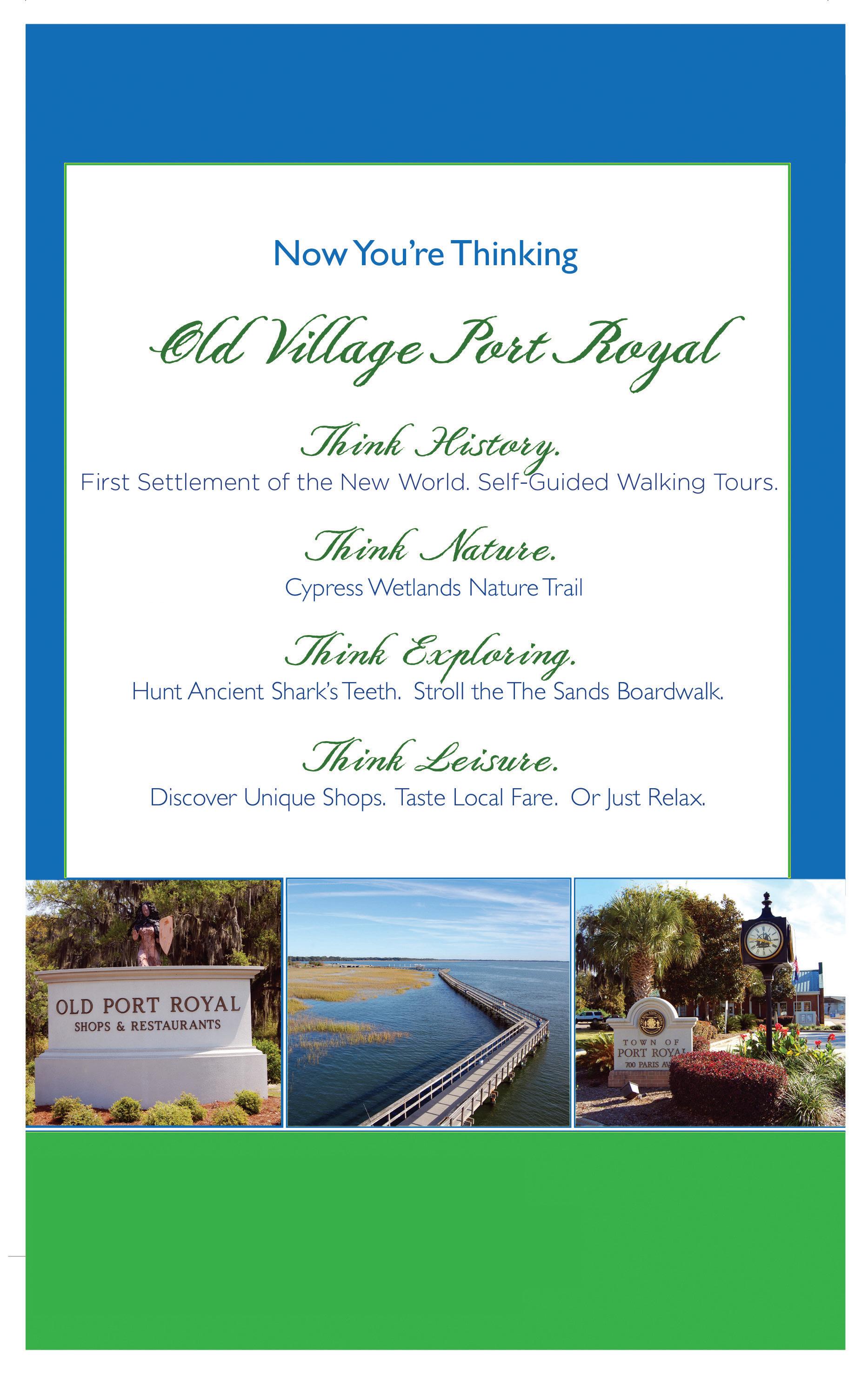 EXPLORE: Port Royal prides itself on gifts from the sea, and encourages visitors to see and taste the treasures. For a catch-of-the-day meal, dine while overlooking the Port Royal Sound at Fish Camp Restaurant or Shellring Ale Works. Get to know the feathered locals along the trails of the freshwater wetland bird sanctuary, or climb to the top of the observation tower at the boardwalk and watch dolphins frolic in Battery Creek. Visit Cypress Wetlands to get up-close with the area’s native plants and wildlife right in the heart of downtown. Soak up the sights on the trails, boardwalk and pier.