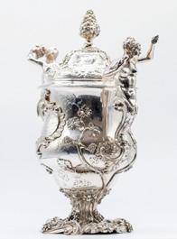 Sotheby’s experts said the 13.5-inch silver cup and cap, sold through Sotheby’s auction house and created by Thomas Heming of London, “is among the earliest and most sophisticated examples of rococo silver which can be linked to the American Colonies.”
