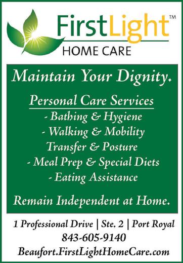 PARKINSON’S SUPPORT GROUP - First Thursday of the month at Beaufort Memorial LifeFit Wellness Center, from 1:30-2:45pm, 900 Ribaut Rd. Beaufort. We are individuals with Parkinson’s care partners of those with Parkinson’s, and individuals or companies providing products or services for Parkinson’s pa tients. For more info: Rick Ostrander at pdawaresc@ gmail.com or Facebook at Parkinson’s Support Group Of Beaufort SC Port Royal & Lady’s Island.
