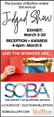 Now – 2/28, SOBA Annual High School Art Show. Opening Reception Sat 2/8 from 3-5pm. SOBA Gallery, 6 Church Street, Bluffton.