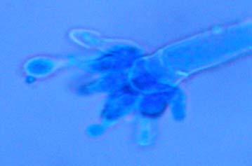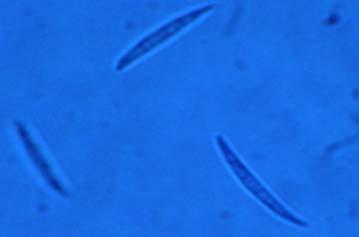 Microscopic characterization of the fungal endophytes in pure culture was achieved by preparing wet mounts with lactophenol cotton blue of the cultures growing in slide cultures (Riddell, 1950). Observations at 40X and 60X were made using a light microscope (Olympus U-CMAD3). Different taxonomic keys were used to identify the various genera and species recovered (Barnett and Hunter, 1986; Sivanesan, 1987; Klich and Pitt, 1988; Pitt, 1985; etc). The fungal cultures identified were documented using a digital camera (Olympus, Camedia C-7070) adapted to a light microscope (Olympus UCMAD3) Figures 8-13. A photographic catalog documenting the diversity of fungal endophytes was prepared (Supplement 1) to easy future identifications. Also, a culture collection in glycerol named Sea Grass Endophytic Culture Collection was prepared and deposited in an ultra-low freezer (-80ºC) located at B-218A.