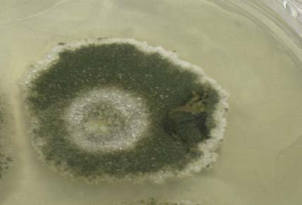 Recovery and identification of fungal isolates: Mycelial growth emerging from the edge of surface sterilized fragments showing distincitive morphological characteristics was sub-cultured in sterile Petri dishes (60x15mm) containing fresh MA and Potato Dextrose Agar (PDA, 39g/L distilled water, Difco). Colony characteristics were documented from pure culture (colony color and form, texture, elevation, and presence of exudates) after incubation at 25ºC for a period of 7 days or until growth was observed. To promote sporulation, colonies were transferred to different culture media: Oatmeal Agar (OA, 72.5g/L distilled water), Sporulation Agar (SA, as proposed by Jong and Edwards in 1991), Malt Extract Agar (MEA, 33.6g/L distilled water), PDA, and Potato and Sucrose Agar (PSA, as proposed Booth, 1971). Identification of Penicillium spp we used Yeast Extract Agar (YEA), MEA, and 25%Glycerol and Nitrate Agar (G25N) as proposed by