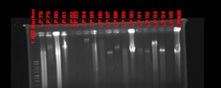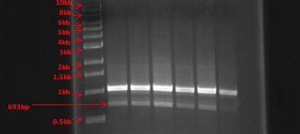 DNA material was stored at -20ºC after determining the DNA concentration by running an electrophoresis gel with a 1Kb ladder.
