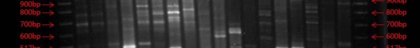 BOX PCR: In BOX PCR DNA fingerprinting, PCR amplification of the DNA between adjacent repetitive extragenic elements is used to obtain strain specific DNA fingerprints which can be easily analyzed by pattern recognition (Dombek et al., 2000). Because of the specificity and resolution of this technique, results will allow discriminating and classifying isolates into groups, reducing the amount of isolates used in further experiments. Isolated strains that have with similar patterns will be clustered into groups and one representative from each group will be submitted to further phylogenetic analysis. BOX PCR was performed using the strains genomic DNA as described previously (Rademaker et al., 1997; Versalovic et al., 1998; Dombek et al., 2000). PCR products were verified on a 3% horizontal low melting agarose gel after staining with ethidium bromide.