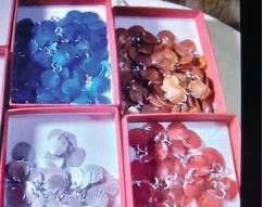 conlleva todo un proceso. Primero lava las escamas, luego las pone a secar con un abanico para entonces cortarlas en diferentes tamaños y formas. Puede darle forma de delfines, de tortugas, de mariposas, o de unicornios; en fin, lo que su imaginación cree. Pero para hacer eso depende del grueso de las escamas, esa es su forma de saber cuál es el uso que les va a dar. Sus herramientas y materiales son pega caliente, alambre para hacer prendas, un cortauñas para darle forma al alambre y unas pequeñas bolitas de metal con las que adorna las pantallas.