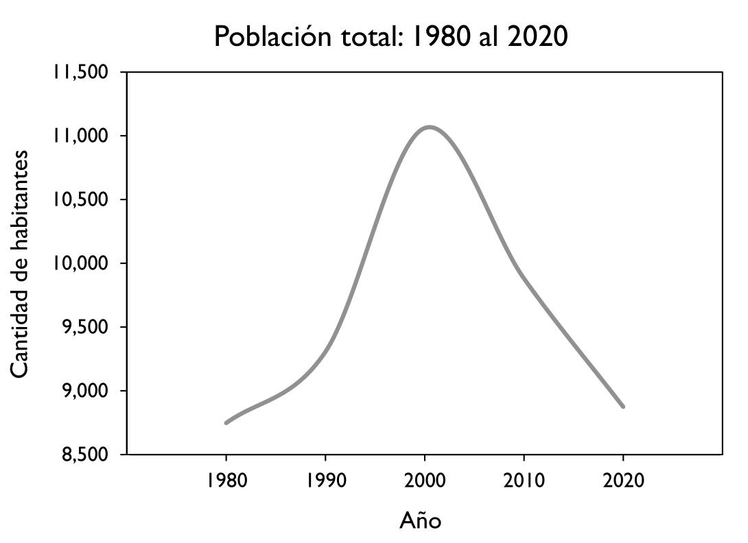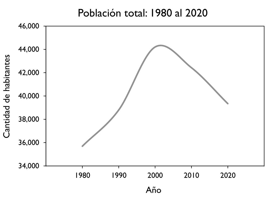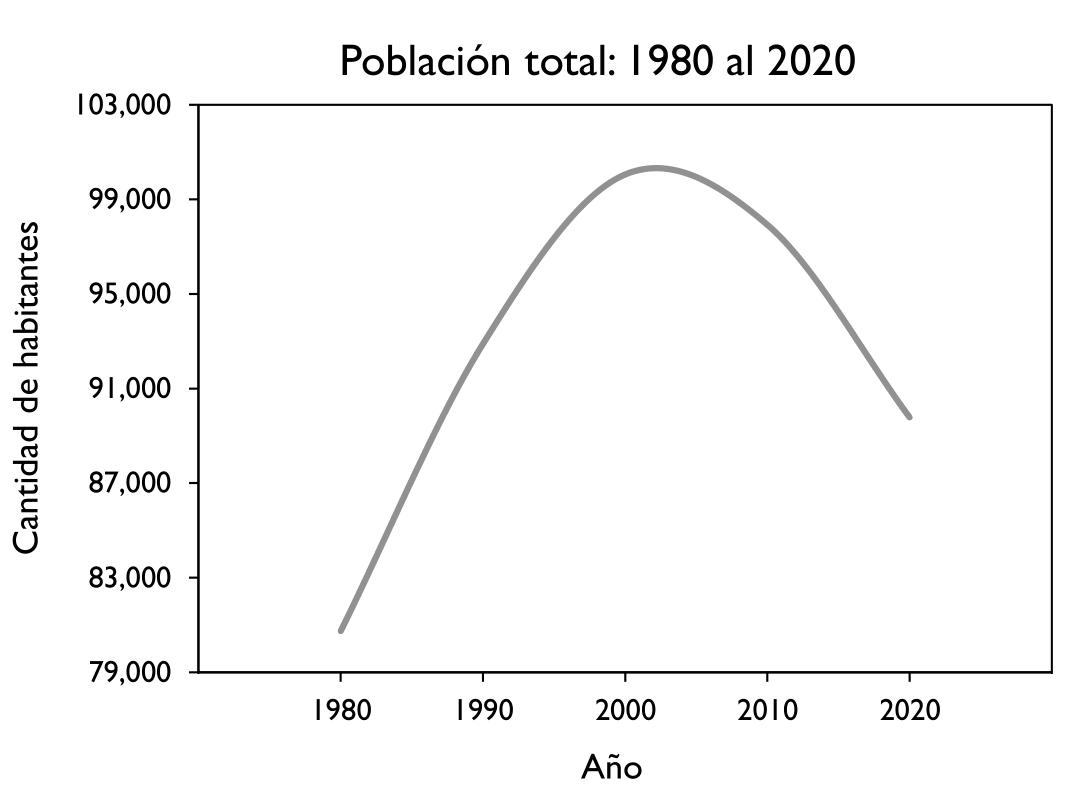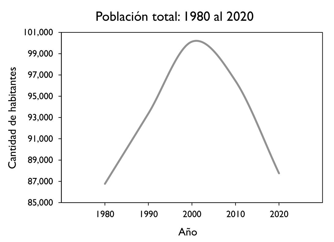Cambio poblacional 2010 al 2020 = -3,980 personas