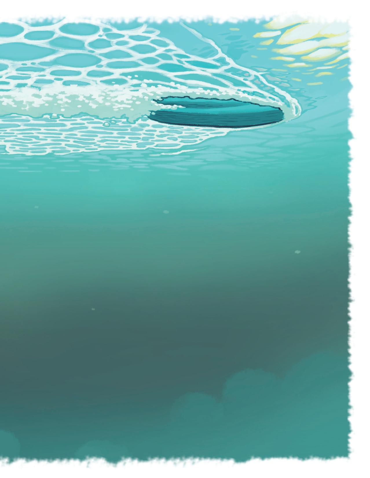 Había sido una motora acuática (jet ski) que pasó y con su rapidez se llevaba todo lo que encontraba a su paso. Pepe se fijó que varias hierbas marinas se desprendieron y el ecosistema sufría daño. Pepe se entristeció y le preguntó a Megalo si esto pasaba con frecuencia.