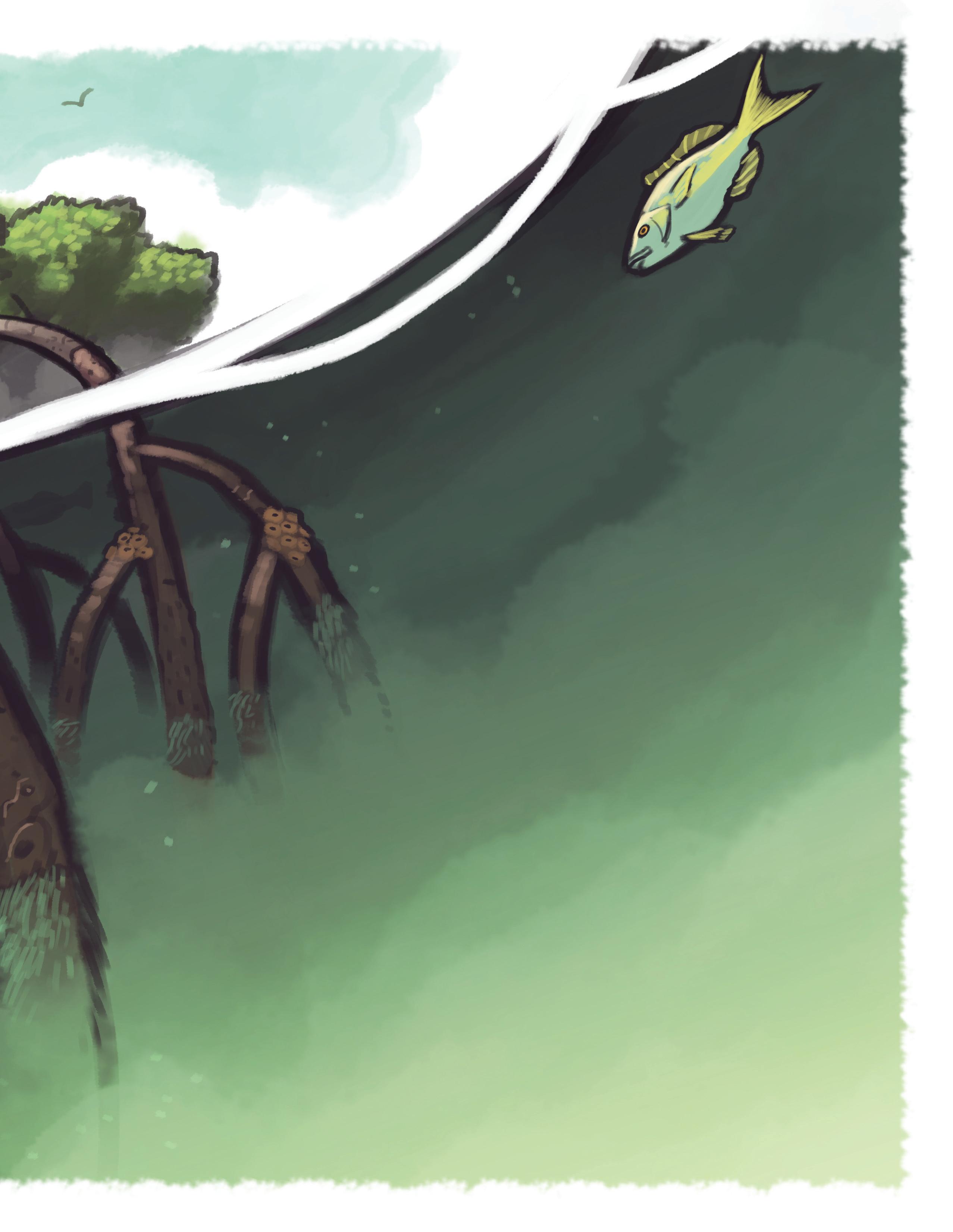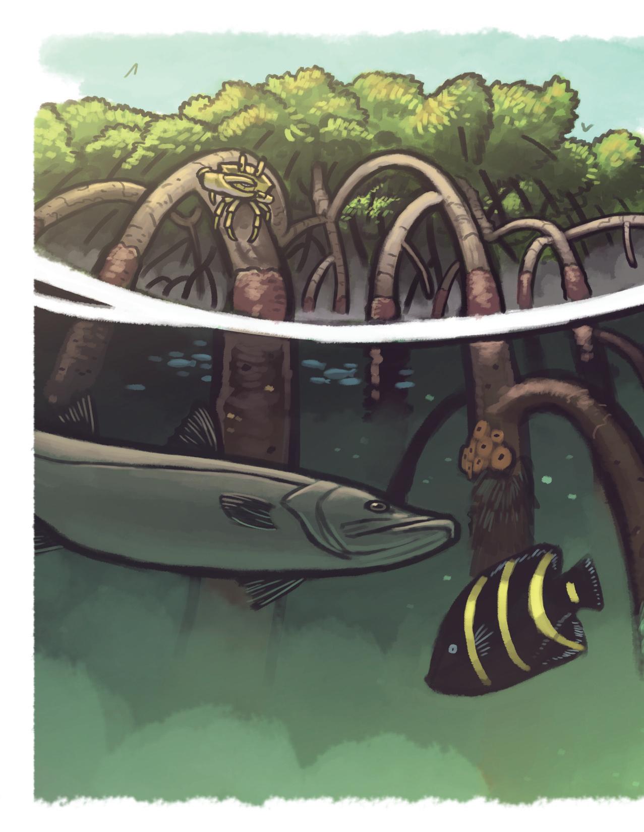 Cuando Pepe escuchó esto cayó en pánico porque sus amiguitos, los que jugaban con él en el manglar cuando eran juveniles, ahora vivían en las hierbas marinas. Si esto ocurría, sus amigos podrían perder su hogar y podrían hasta morir.