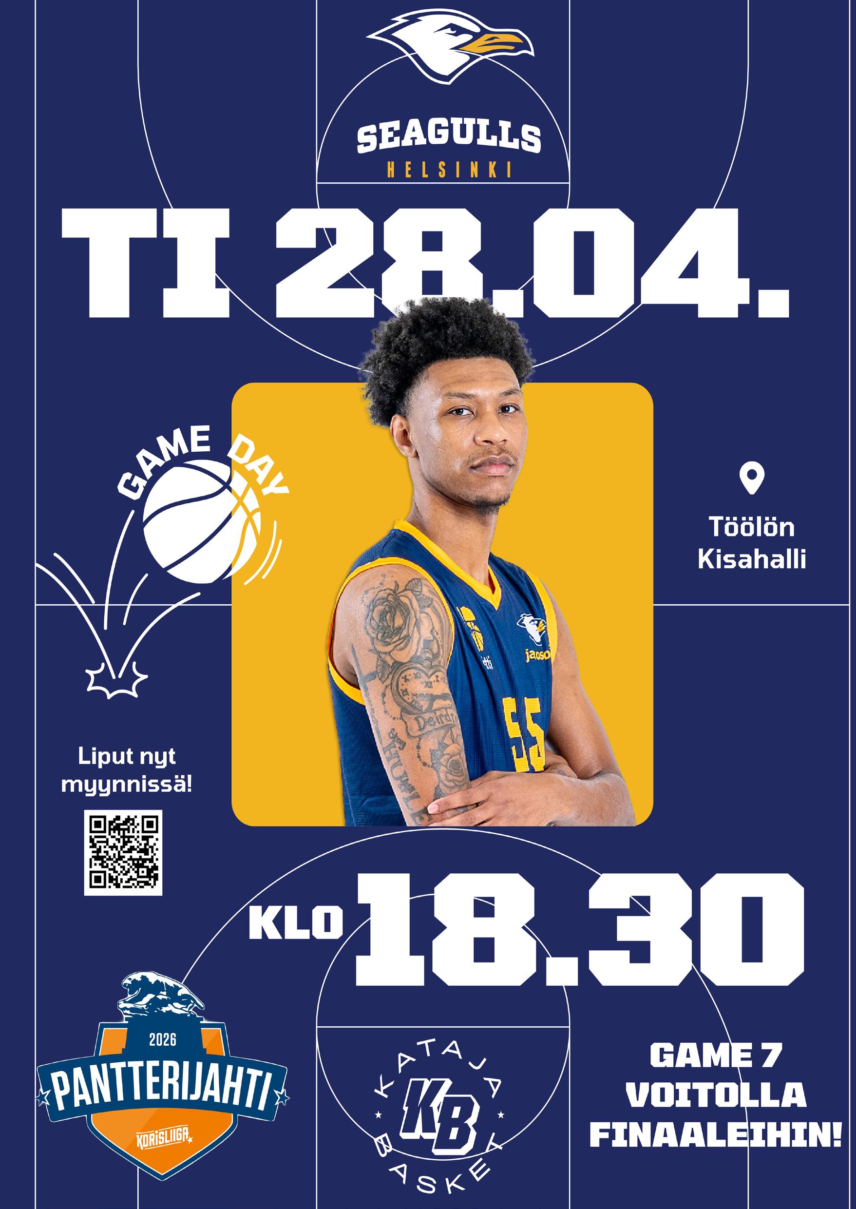 Tänään se kaikki ratkeaa. Kumpi näistä upeista välieräjoukkueista onnistuu vielä kerran olemaan toista parempi ja ottamaan sen viimeisen tarvittavan voiton, jolla lunastaa paikkansa kevään korisfinaaleissa. Seagulls aloitti tämän välieräsarjan kahdella voitolla, mutta tästä seuraavat kolme vei Kataja. Sunnuntaina Seagulls oli ensimmäistä kertaa selkä seinää vasten vieraskentällä, mutta tämä kokenut joukkue osoitti ettei Stadin Lokkien siivet olleet painuneet maahan.