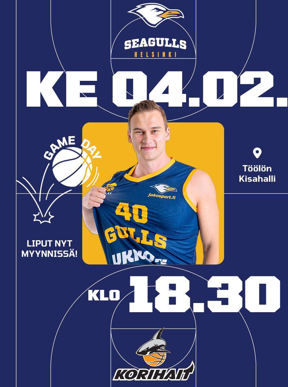 Aurinkoisten pakkaspäivien jälkeen on mukava palata takaisin Kisahallin kotipesän lämpimiin katsomoihin seuraamaan Korisliigan ylemmän jatkosarjan jännittävää kamppailua, jossa Seagulls isännöi tänään Uudenkaupungin Korihaita. Vain yksi voitto erottaa tämän illan kaksikkoa sarjataulukossa, joka takaa herkullisen lähtökohdan illan kamppailulle.