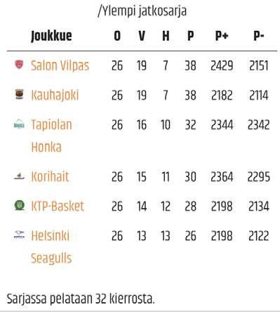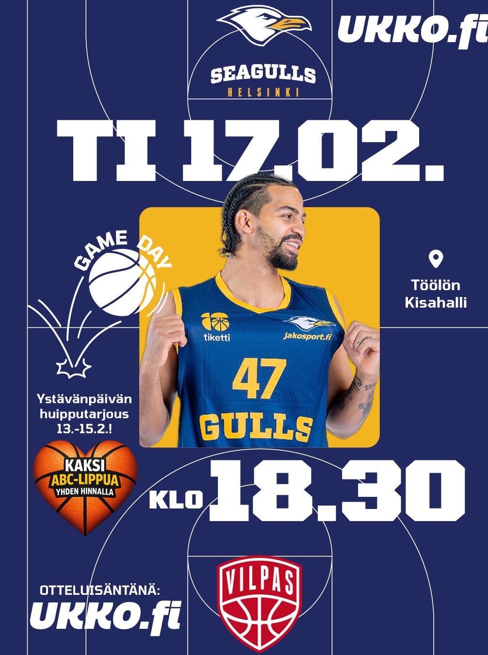 Korisliigan ylemmän jatkosarjan yksi odotetuimmista kohtaamisista on jälleen käsillä, kun Seagulls pääsee ottamaan mittaa sarjakärki Salon Vilppaasta. Joukkueiden keskinäiset kamppailut runkosarjassa päättyivät molemmilla kerroilla kotijoukkueiden voittoon. Jatkuuko sama trendi vielä tänäänkin?