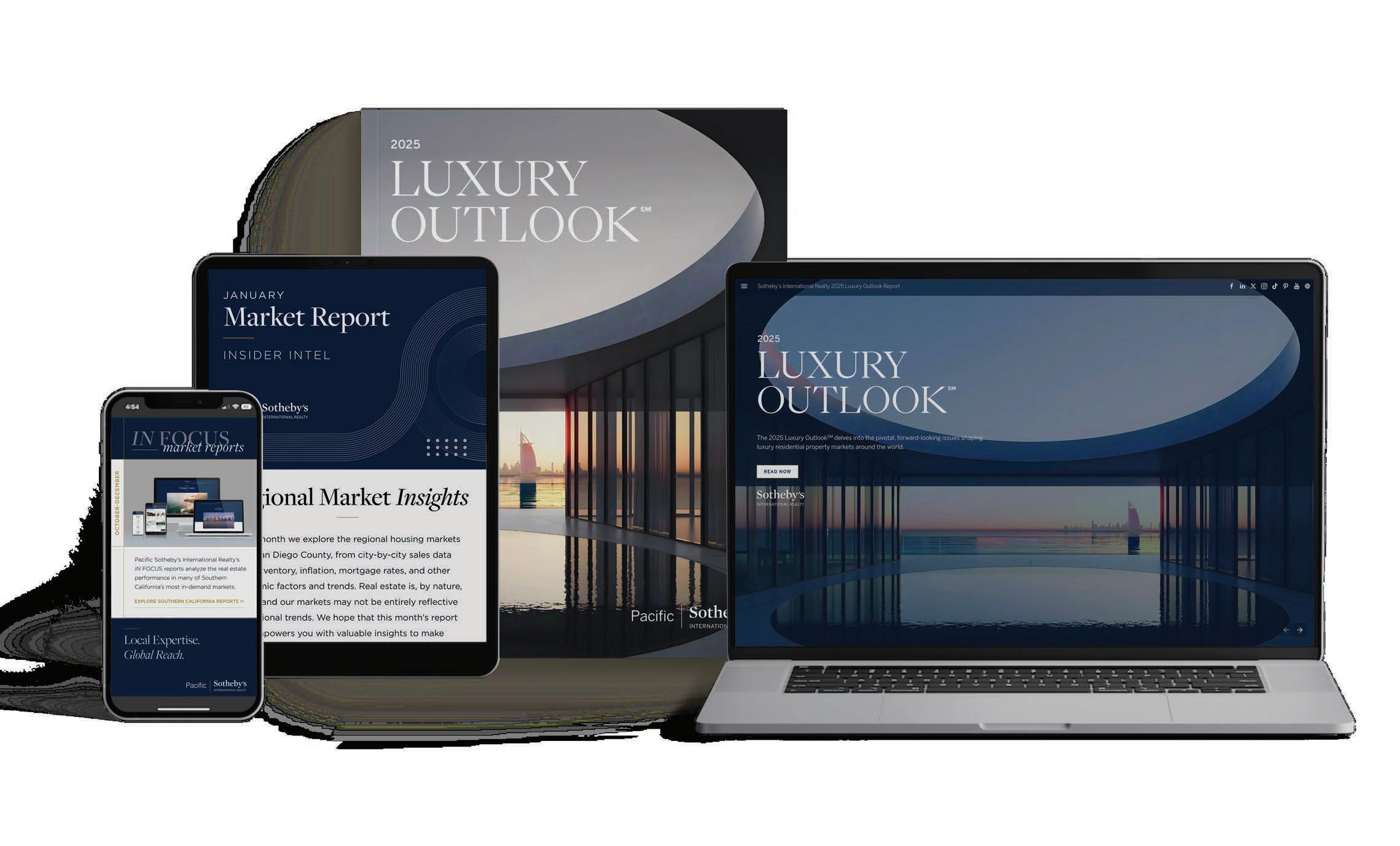 Our unparalleled expertise in high-end residential markets is driven by our unwavering commitment to continuous research. Through our annual Luxury Outlook report, quarterly In Focus reports, and monthly Insider Intel updates, we deliver invaluable insights on emerging trends and consumer behavior in residential markets, both locally and globally. By harnessing this wealth of data, we empower our clients to make well-informed, strategic decisions, ensuring their success in the most competitive markets.