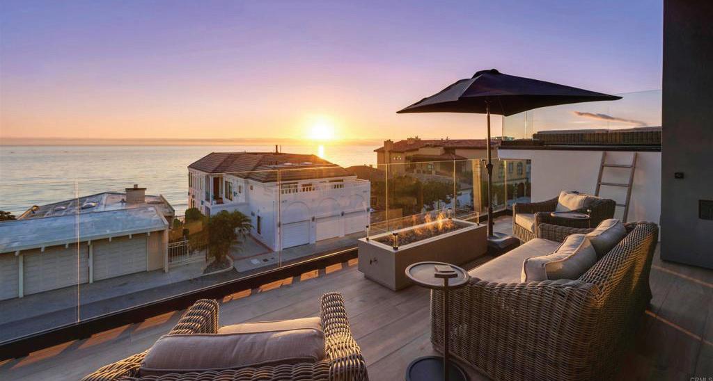 Custom ocean home built in 2021, perfectly positioned on one of Carlsbad’s most desirable streets with endless ocean and white-water views. This modern luxury beach residence sits just steps from one of San Diego County’s top three beaches, offering direct sand access. Designed for coastal living, it features striking contemporary architecture with Porcelanosa flooring, floor-to-ceiling glass walls, and expansive decks for seamless indoor-outdoor flow. The open-plan layout includes soaring 10-foot ceilings, a gourmet kitchen with Wolf and Sub-Zero appliances, and living areas anchored by a gas fireplace with 30-foot sliding glass doors. The home boasts three levels, including a luxurious primary suite with ocean-view deck, dual walk-in closets, and a spa-inspired ensuite. Additional highlights include a private elevator, two laundry rooms, commercial-grade glass sliders, two outdoor showers, and a 2.5-car garage with Tesla charger. Smart home technology, Lutron lighting, automated window treatments, and a Sonos whole-house sound system enhance modern living. Nestled near Carlsbad Village and the iconic Pacific Coast Highway, this home offers the ultimate beachside lifestyle with unbeatable location and refined coastal elegance.