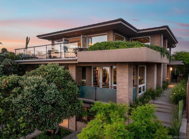 An extraordinary seaside setting of beauty and privacy awaits, where vast whitewater ocean and sunset views immerse you in coastal splendor, soothing breezes, and the rhythmic sound of the surf. Completely rebuilt in 2005, this exceptional Olde Del Mar home is set on a meticulously landscaped 0.34-acre parcel, sheltered by lush plantings and majestic Torrey Pines. Four sets of Fleetwood doors open to ocean-facing decks, creating a seamless indoor-outdoor environment ideal for entertaining and relaxed coastal living. Architecturally striking wood ceilings and expansive windows enhance the open main-level living areas, which include a dedicated office. The stunning chef’s kitchen, remodeled in 2017, features a large center island with bar seating, walk-in pantry, and abundant cabinetry designed for both style and functionality. Downstairs, three en suite bedrooms—including the ocean-view primary—and a family room offer comfort and flexibility, with each room opening to the exterior. A detached studio, which sits below the two-car garage, connects to the main house via a tranquil turfed yard. The backyard retreat is thoughtfully designed with flagstone patios, an outdoor kitchen/bar with a Lynx barbecue, spa with waterfall, fire pit, and sculpted lawns overlooking the Pacific. A rare opportunity to embrace everyday life by the sea, just minutes from Del Mar’s iconic beaches, scenic trails, and the boutique shopping and dining of The Plaza and Village.