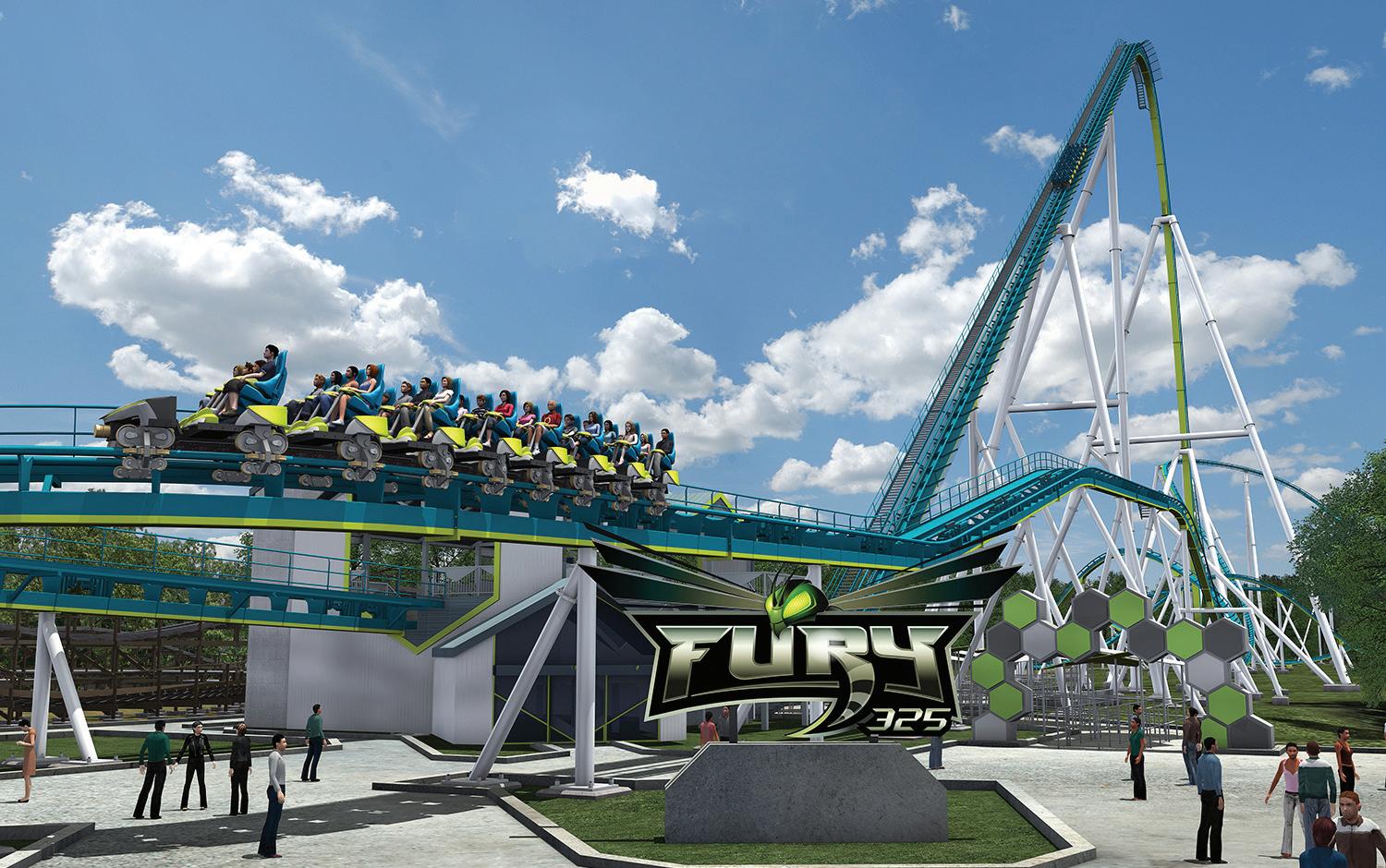 A rendering of Fury 325, the newest ride at Carowinds. Opening this spring, it is the tallest and fastest Giga Coaster in the world.