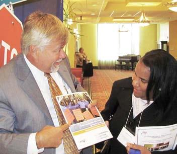 State employees took part in the North Carolina Association of Workforce Professionals conference in Winston-Salem on Oct. 6 and a SEANC recruitment table was there on the scene. Pictured, left, is Fairley Grimes of Colonial Insurance and, right, District 17 member Carolyn Irving.