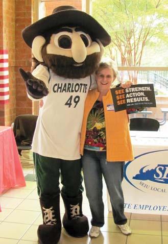 District 13 members participated in the UNC-Charlotte Fall Festival on Oct. 11 by sponsoring a recruitment table and a ring toss game with the university mascot, Norm the Niner. Pictured with Norm is District 13 member, Renda Gwaltney.