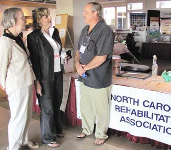 A SEANC recruitment and information table was set up at the North Carolina Rehabilitation Association conference Oct. 26-28 in Wrightsville Beach, where over 200 state employees were in attendance. Pictured, left to right, are District 64 member Rebecca Tyndall, District 21 member Kim Stewart and District 57 member Dean Bunn.