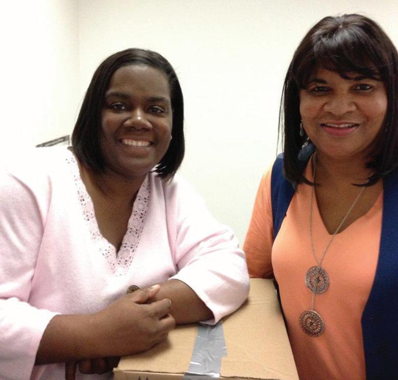 Peggy Cotton, District 19’s Fundraising and Community Service Chairwoman, left, is pictured with one of Gravelly Hill Middle School’s administrators. District 19, in collaboration with the school and the Neighborhood House of orange County, donated three boxes of items to assist families in need this holiday season.