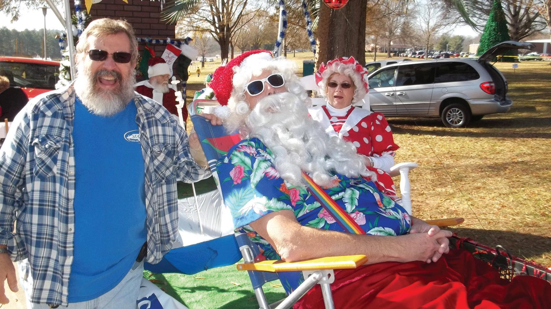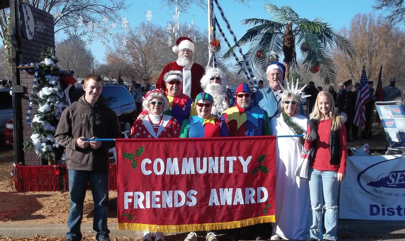 Members of District 5 participated in the annual J. Iverson Riddle Development Center Christmas Parade in Morganton and won the Community Friends Award. Pictured from left to right in the front row is Georgia Stapf, Sherry McCracken, Dale Brittain and Sunny Vanderbloemen, in the middle row is Johnny Burnette, District 5 Chairman Tony Smith and Nick Fox, and on the back row is Sam McCracken.