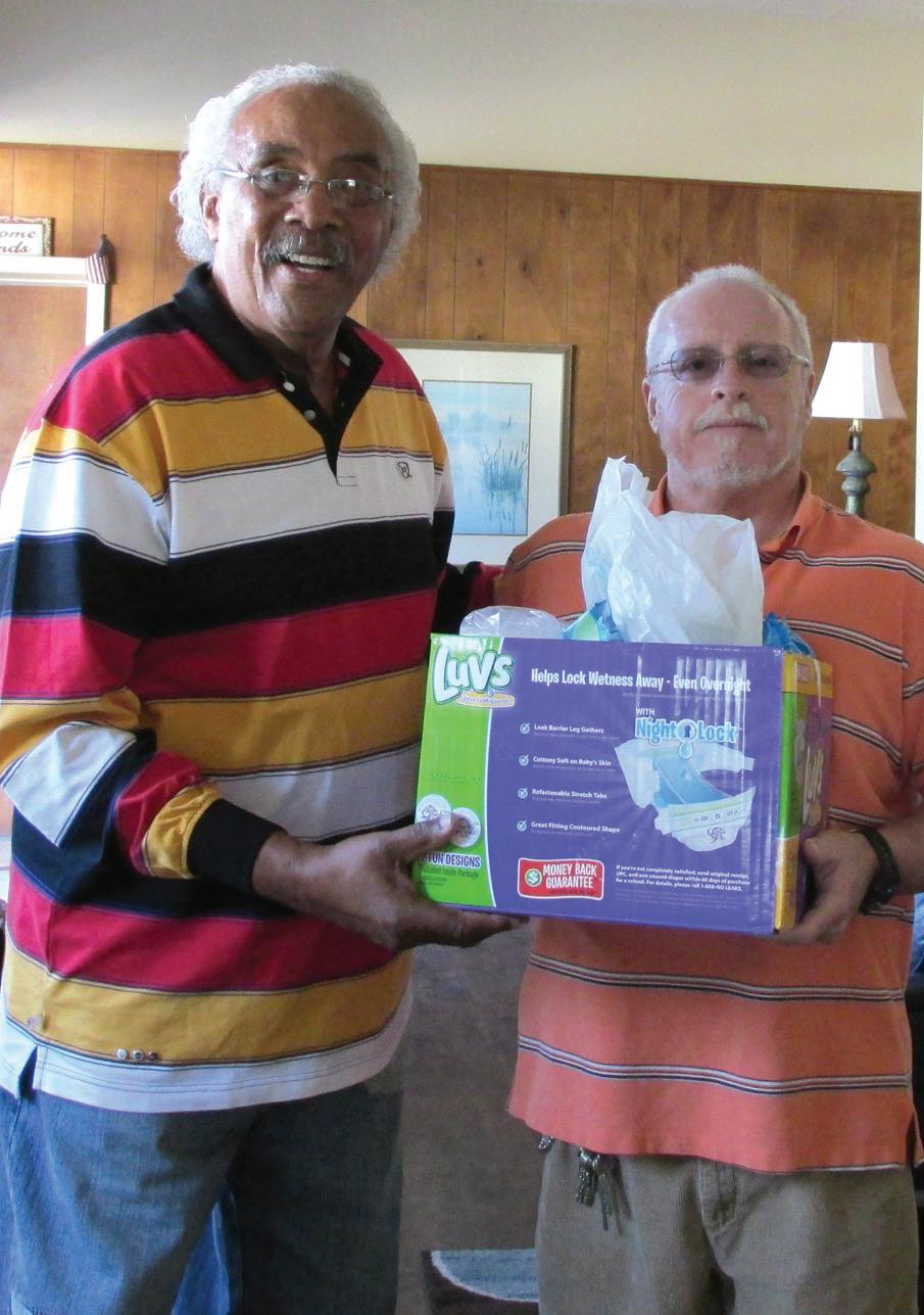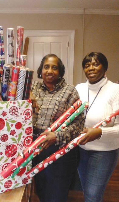 District 66, located at Caswell Developmental Center in Kinston, gave back to the community during the 2013 holiday season. Items were collected and donated to the Friends of the Homeless Shelter in Kinston. Pictured at left are Jasper Newborn and District 66 Chairperson Mike Kollock. District 66 also donated $100 and collected wrapping paper for Caswell Developmental Center’s Operation Santa Claus Project, an annual fundraiser that ensures that every individual who lives at the center has a new present to open on Christmas morning. At right are members Evelyn Brown and Jackie Clemons.