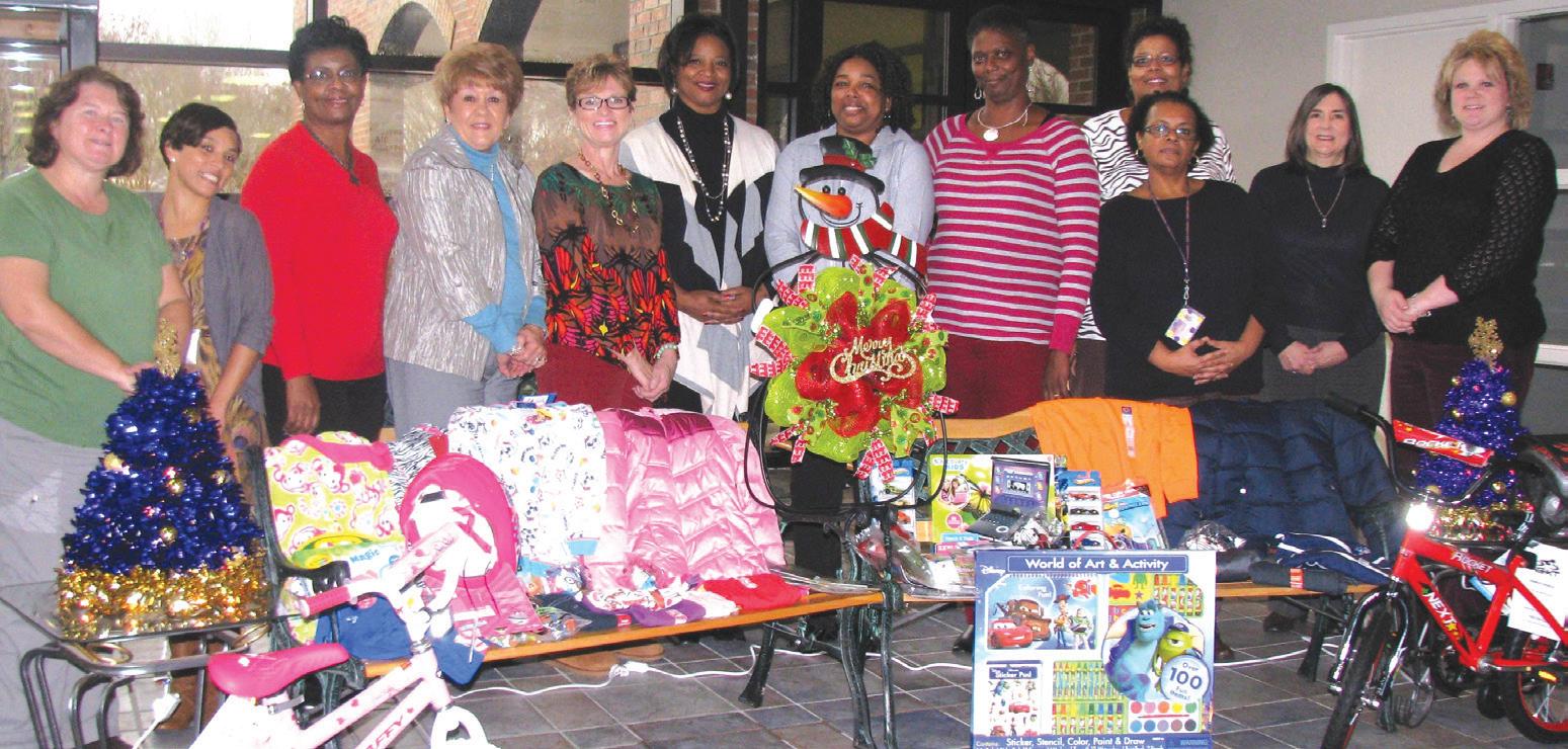 District 65 adopted a brother and sister this Christmas through the Salvation Army Angel Tree Program. Pictured from left with the gifts are Lynn Tuthill, Jacqueline Caudill, Doris Wrighten, Debbie Jackson, Darlene McRoy, Helen Little, Lina Johnson, Cynthia Hart, District 65 Chairwoman Gloria Evans, Martha Peele, Debbie Austin and Laura Deans.