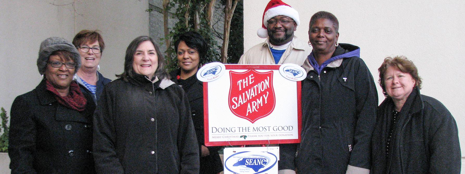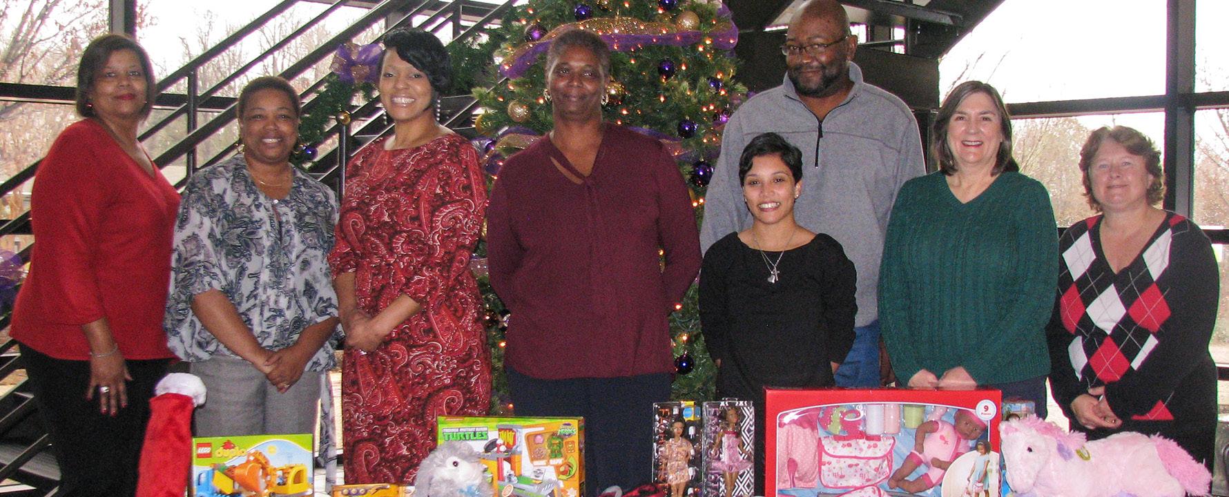 District 65 adopted two children during the holidays through the Salvation Army Angel Tree Program. The district donated $200 per child and purchased as many items from the list as possible. Pictured from left with the gifts are SEANC First Vice President Gloria Evans, District 65 member Lina Johnson, District 65 Chairwoman Alicia Simpson, and District 65 members Cynthia Hart, Jacqueline Caudill, Dwayne Mackey and Lynn Tuthill.
