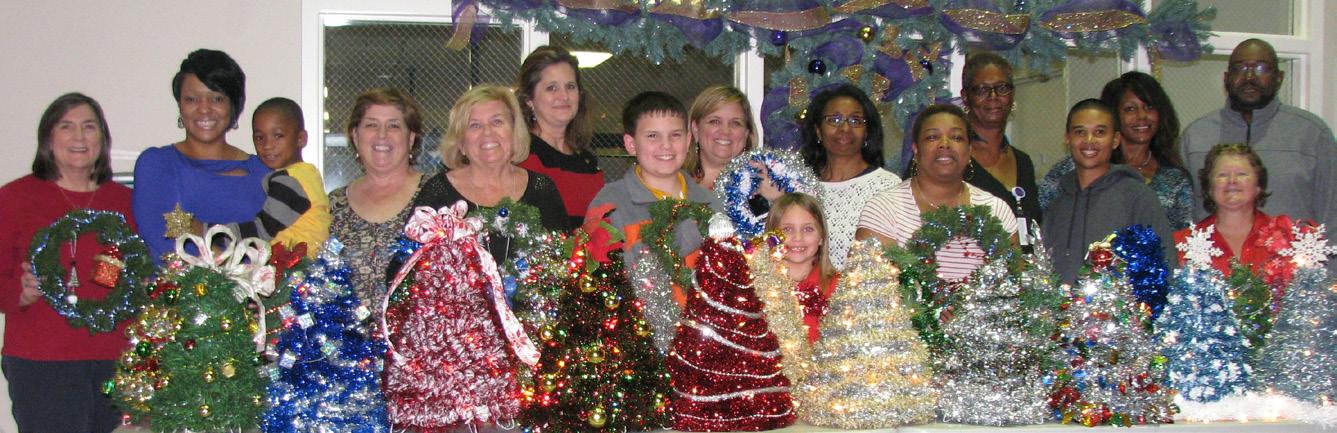 District 65 members, friends and volunteers got together on Dec. 6 to transform wire coat hangers, garland and strings of lights into 22 miniature Christmas trees. The group also made six wreaths. The trees and wreaths were donated to Greenville area nursing homes. Pictured from left are Debbie Austin, District Chairwoman Alicia Simpson, Jeremiah Cherry, Karen Simmons, Gloria Batts, Tammy Heller, Cody Hodges, Shannon Hodges, Lydia Hodges, Deborah Hall, Lina Johnson, Cynthia Hart, Laranda Boone, Marquerite Latham, Lynn Tuthill and Dwayne Mackey (not pictured Minnie Jackson).