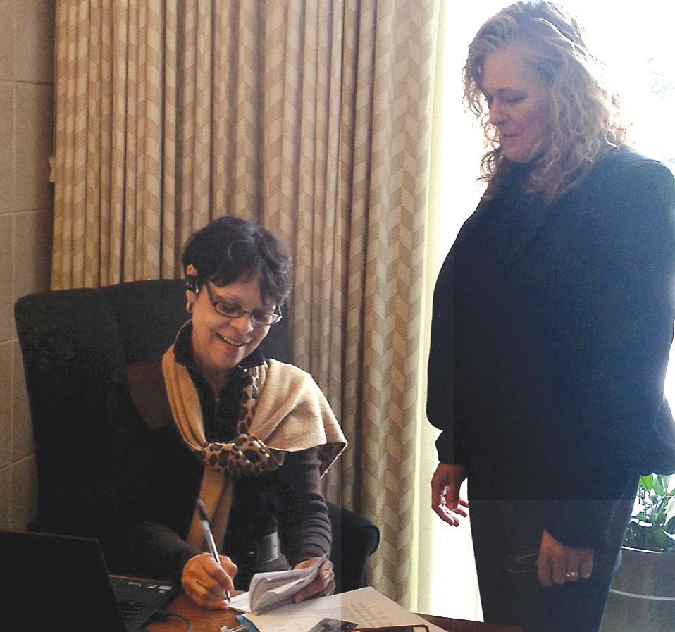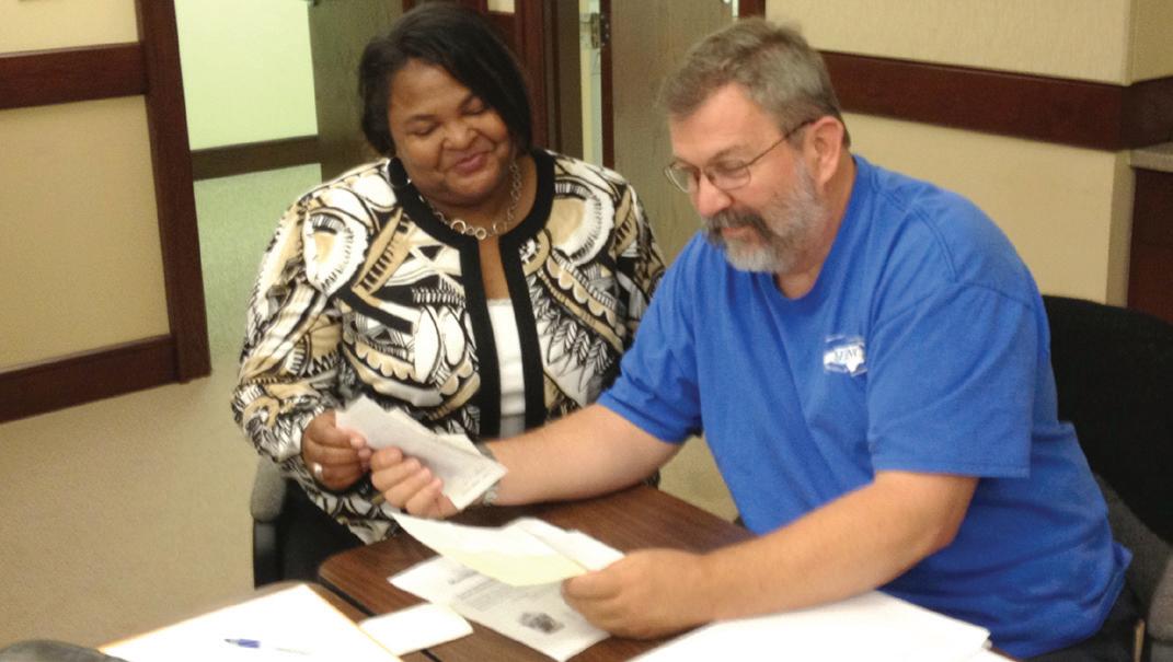 State rep. Bobbie richardson (D-Franklin) renews her SEANC membership with a little help from Member Action Director lynn Cote recently.