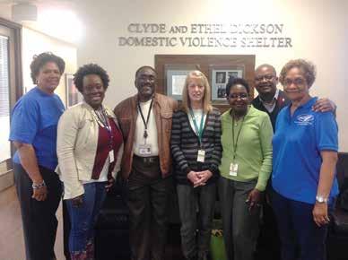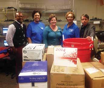 District 13 members and Central Piedmont Community College library staff formed a partnership and collected Christmas gifts for the Clyde and Ethel Dickson Domestic Violence Center in December. Pictured with library staff are District 13 Chairwoman Linda Colbert and member Angela Eddie (wearing SEANC shirts).