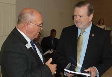 SEANC Interim Executive Director Mitch Leonard discusses retirement with state Senate President Pro-Tem Phil Berger.