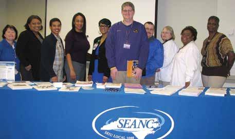 District 65 signed up new members at a Benefits/Membership Fair on Jan. 14 at East Carolina University’s health sciences campus. Pictured from left are SEANC members Lynn Tuthill, Jessica Mitchell, Laranda Boone, Member Action Coordinator La’Taun Danns, District 65 Chairwoman Alicia Simpson, new member Jeffrey Jones, Member Action Coordinator James Vaughan, Glenda Daniels, Delores Bowling and Cynthia Hart.