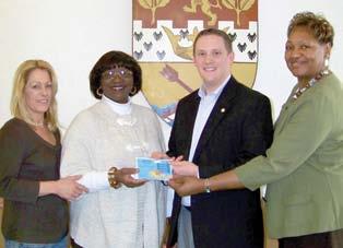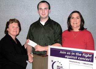 District 65 showed their support by raising $1,000 through car washes and bake sales for the 2011 Relay for Life of Pitt County. The event, which celebrates the lives of people who have battled cancer, will be held at South Central High School on April 29 and 30. The district will sponsor their own SEANC Purple Crusader and SEANC Gold Crusader teams in the event. Pictured, left to right, are District 65 member Lynn Tuthill, Relay for Life Accountant Adam Wells and District 65 member Debbie Austin.