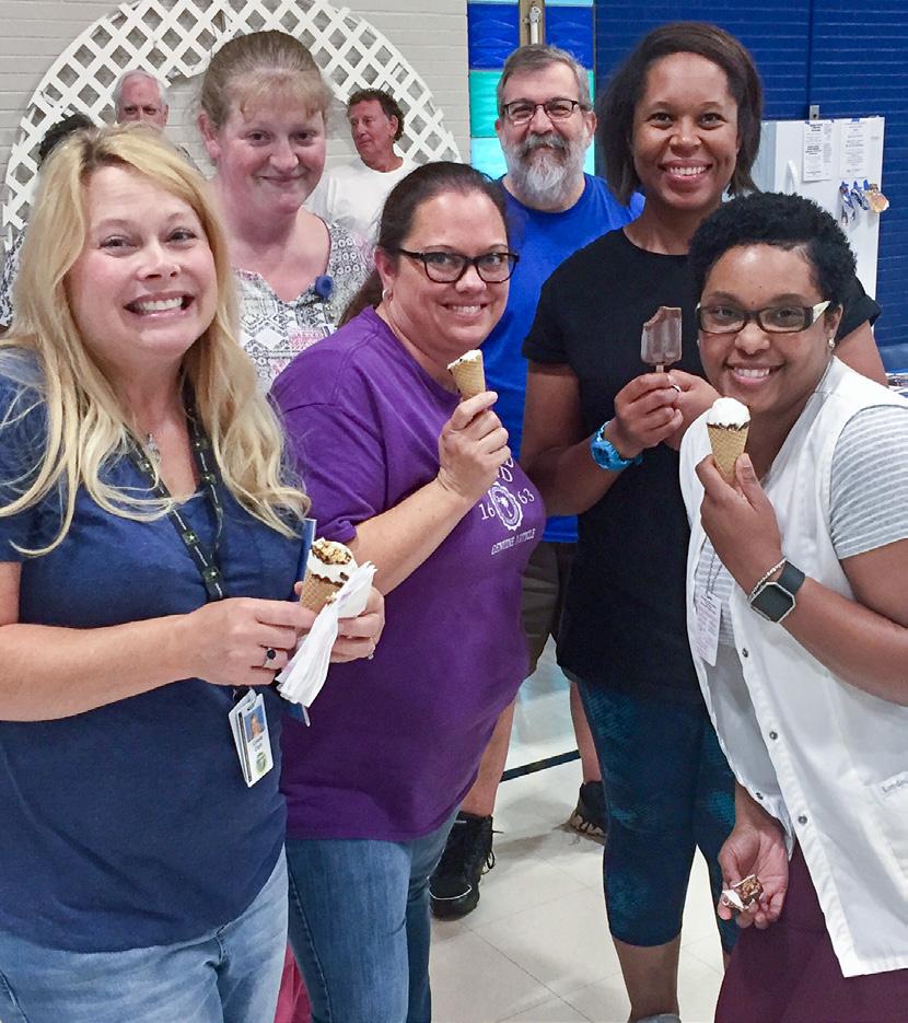 District 7 members hosted an Ice Cream Appreciation Membership Event at J. Iverson Riddle Development Center on Aug. 2 to sign up new members, switch existing members over to bank draft and sign up members for text alerts. Pictured are District 7 member Jamie Holden, District 7 Chairman Henry Belada and Nutrition Department staff members Connie Clark, Pamela Farris, Erika Avery Wilson and Tonise Hooper.