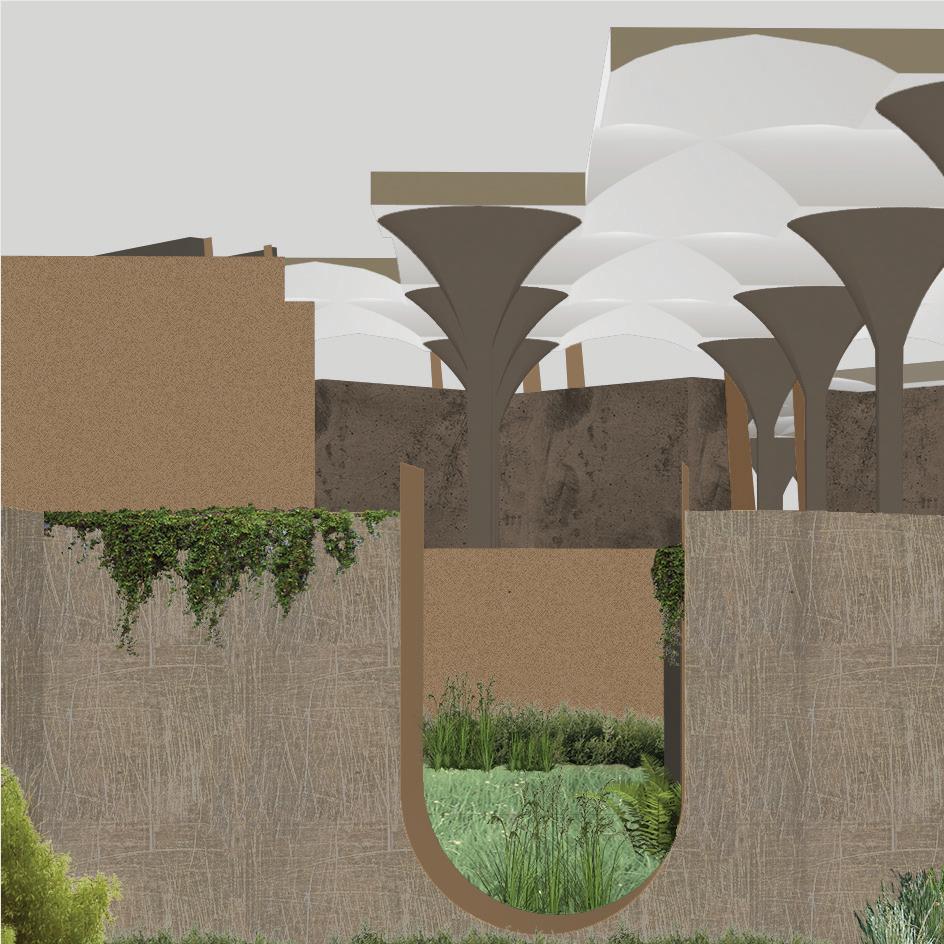 The project plays with changes in levels, both in the subterranean footing of the site and the ground and above, to encroach a temporal experience for the site’s user.