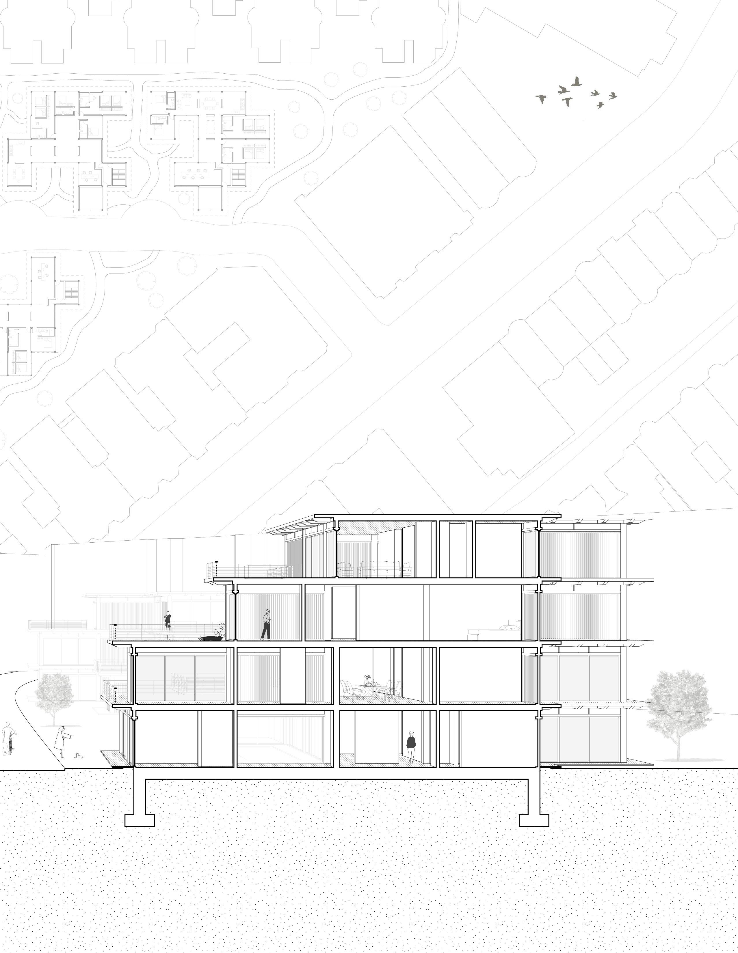The spatial overlap between the two residential units allows each family to feel secure in their home while simultaneously being connected to the other family. The Nakama House aims to explore how multi-family residential complexes can initiate social interactions to foster a sense of community.