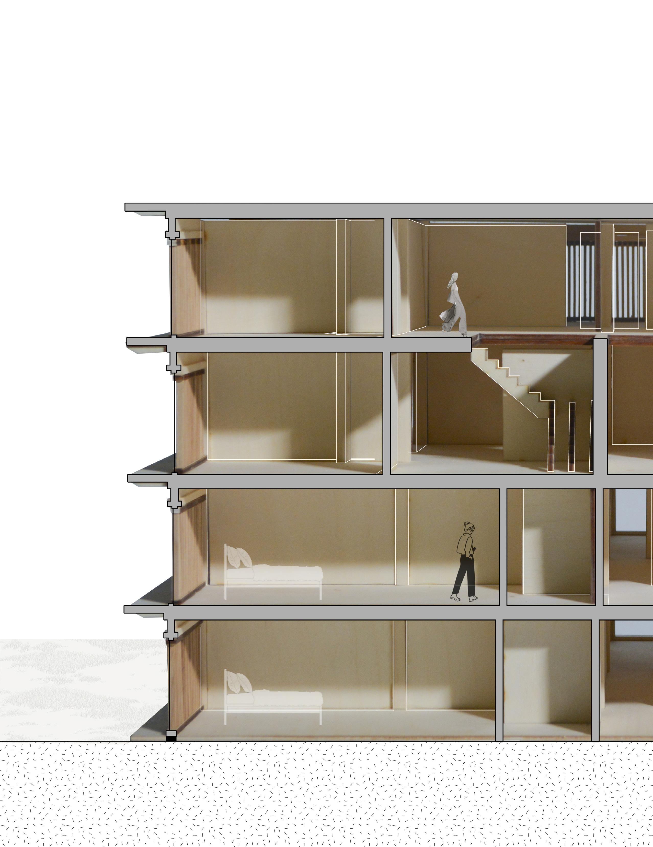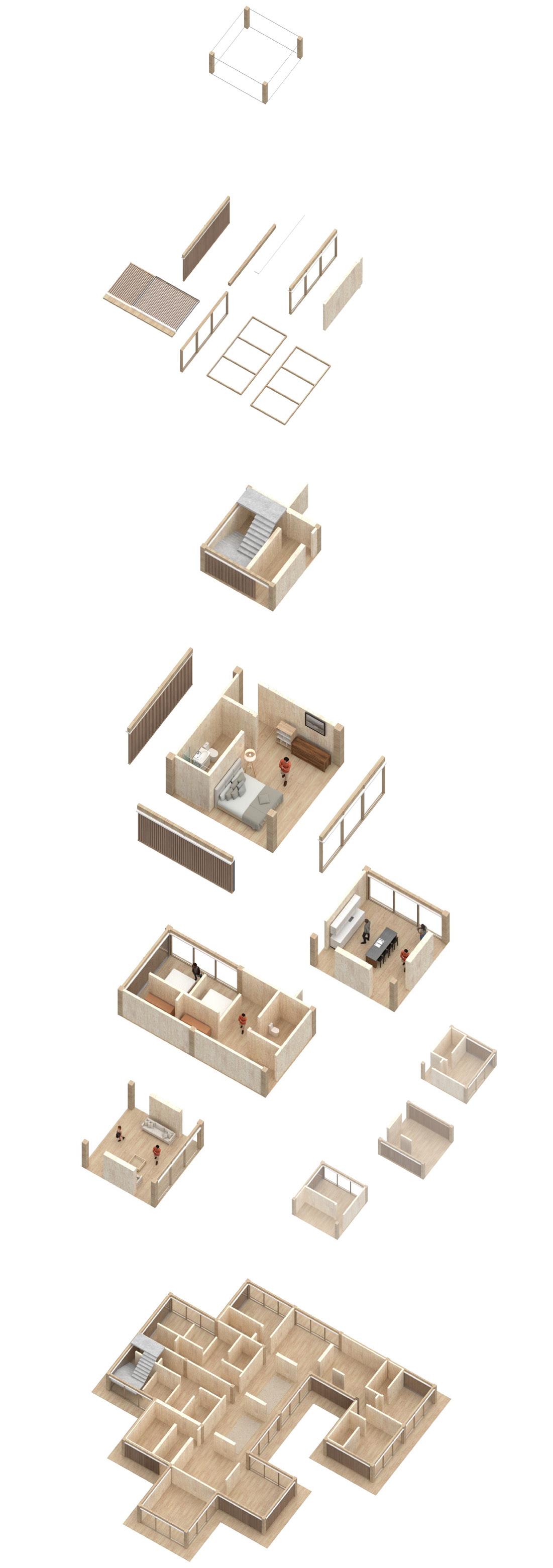 This project uses two underlying principles, modularity and co-living, to drive the design for an adaptable community-focused residential development. Co-living allows for a sense of individuality while keeping a relationship with a larger whole. Co-living provides a solution for urban density reduction. Modularity is explored in this project because it emphasizes and supports the part-to-whole relationship of co-living. Modularity offers flexibility, adaptability, and affordability. Together, co-living and modularity form the perfect harmony for the future of urban living.