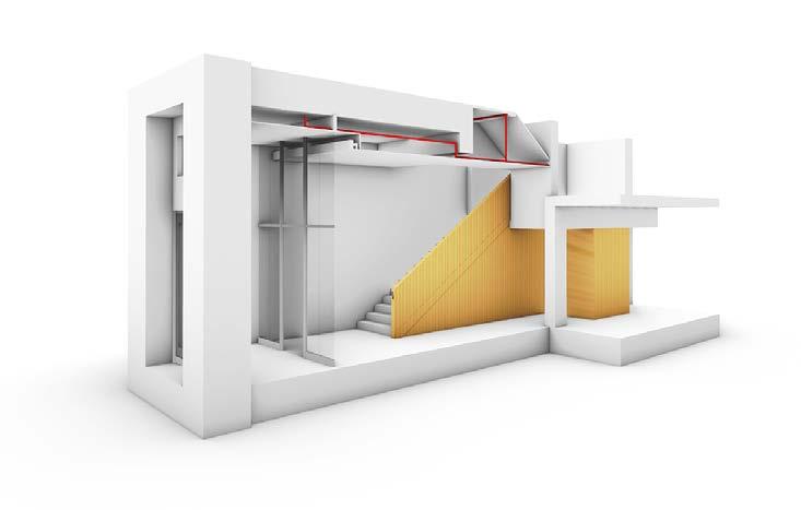 • To create a grand transversal, naturally lit entry space the principal front and rear entrances were centrally relocated using French doors complemented by hipped dormers above to maintain sky exposure culminating in a large central foyer connecting kitchen, dining and living areas.
