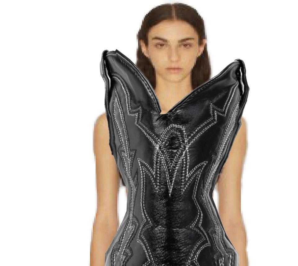 An observation in subverting traditional couture references into new, counterculture contexts.