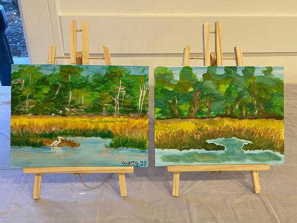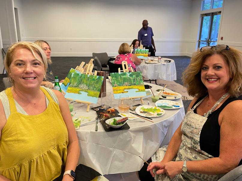 This past quarter we had the privilege to have one of our Sea Palms members, Jennifer Broadus, lead us in an easy step by step class where we made our own landscape paintings. Beautiful job, ladies!