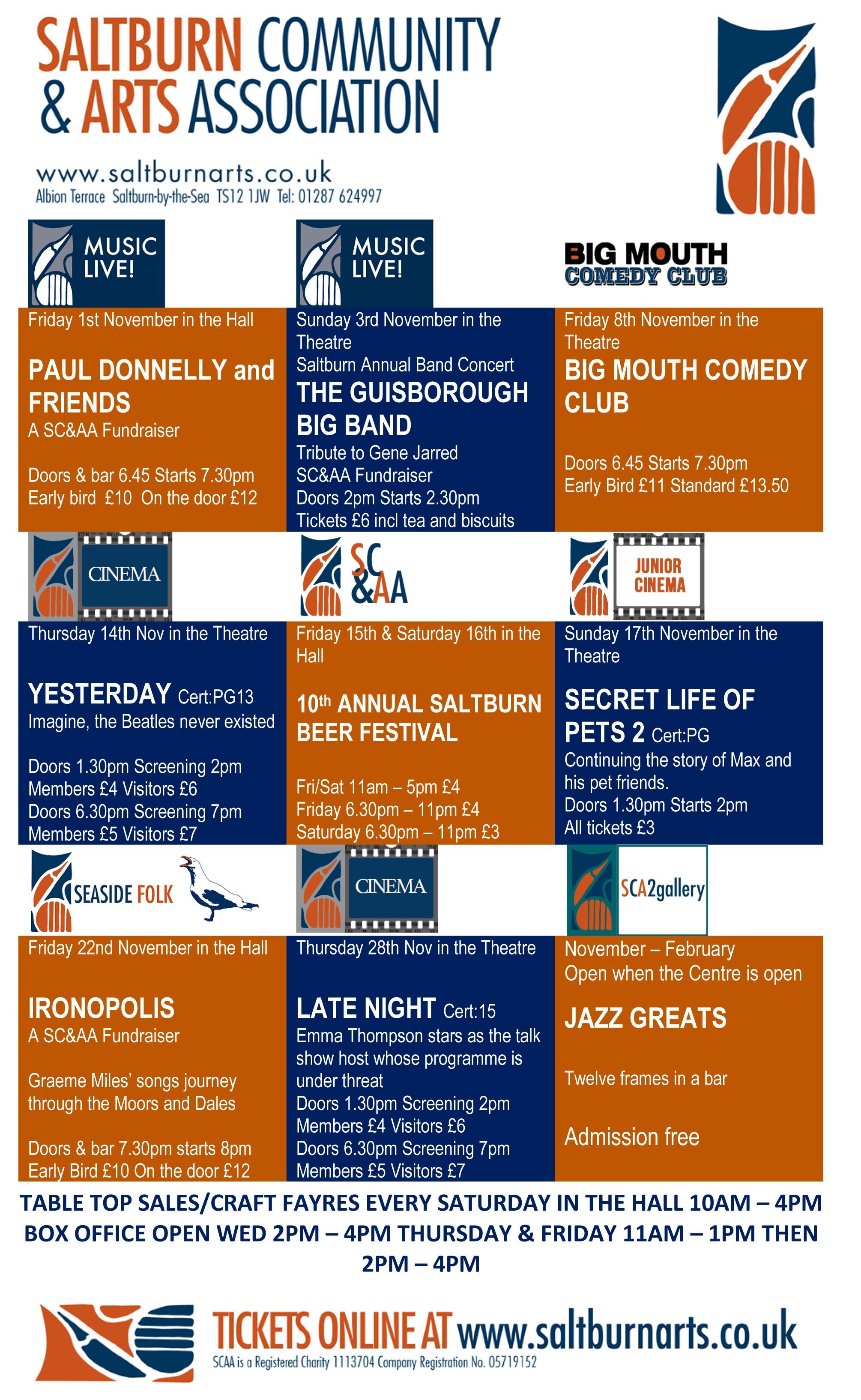 Saltburn Beer Festival will be held in the SCAA community hall on 15th and 16th November 2019. See article on page 20.